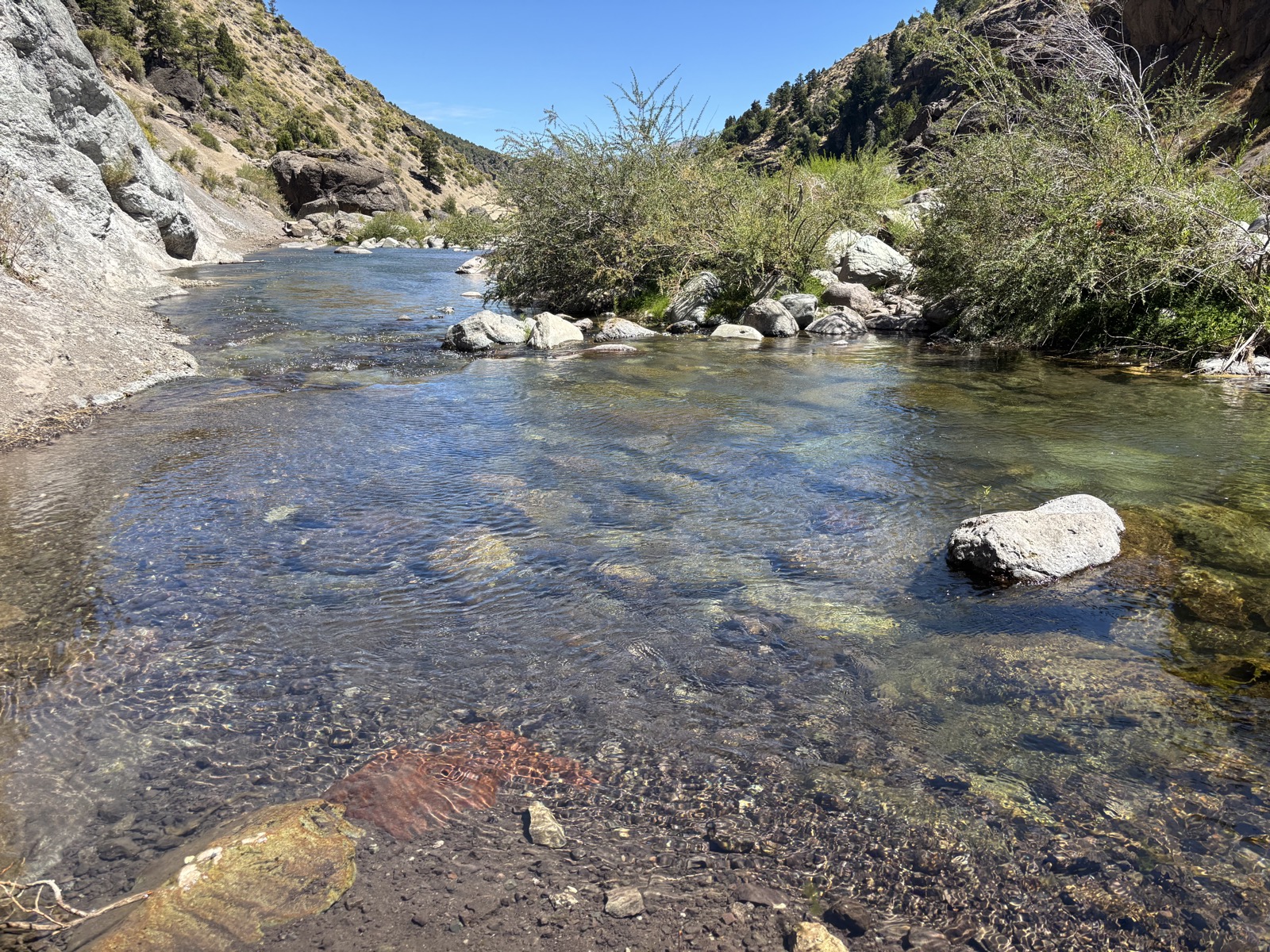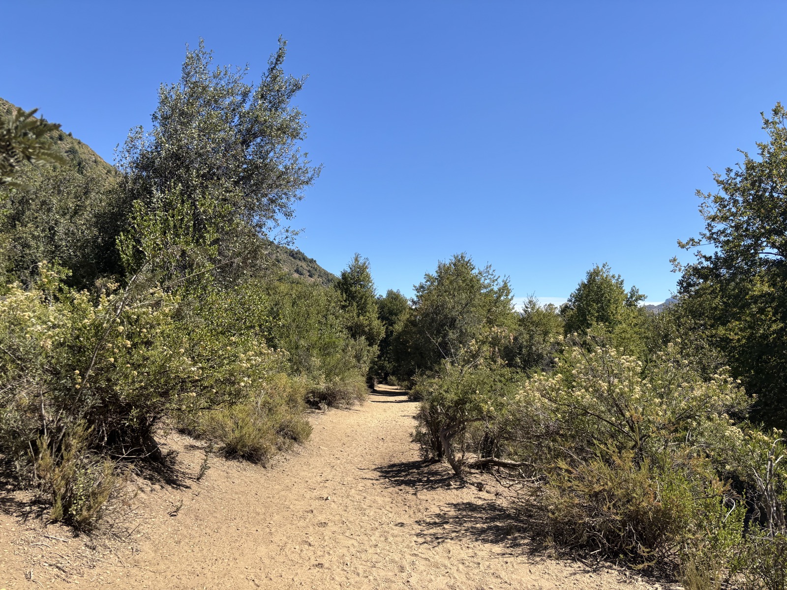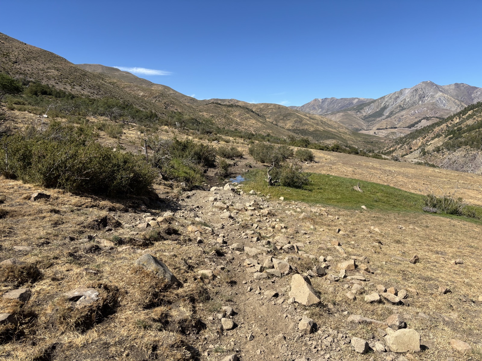 Je to tu hezký a stezka je fajn, kdyby nebyla tak prašná. Prach je tu všude. Ono tu totiž přes léto skoro neprší. Jen tečou řeky a říčky a potoky. Ale hlavně já už jsem unavenej a už se těším do civilizace. Tahle sekce ani neměla být moc těžká – 3/5 – a uznávám, že oproti těm předchozím to snazší je. Ale stejně mi to přijde hodně náročný tím, že se člověk musí neustále soustředit, kam ta stezička vede. Často jich je několik, člověk se snaží držet té hlavní, pak se najednou ocitne trochu mimo, tak zas hledá tu hlavní. Teď do toho různé terénní vsuvky – prudce nahoru a pak zase dolů. Je to celé únavné. Aspoň že je dost vody a člověk jí nemusí tahat moc. Rozhodně to pro mě byla zajímavá zkušenost. Ale už se těším na nějakou normální stezku v Evropě anebo v USA.