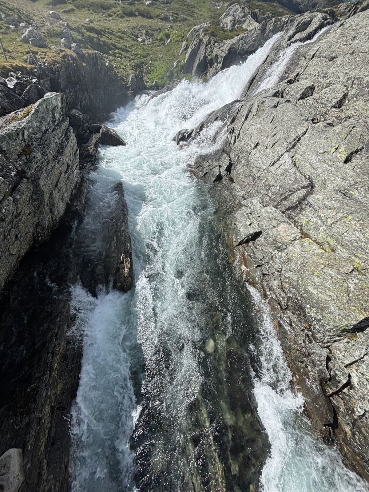 Poslední úsek je fajn. Jdu kolem takové divoké řeky, až sejdu skoro k jezeru a tady přejdu přes most a jsem u chaty. Je 15:15. Jdu se na recepci zeptat na nocleh. Jsou plní, takže budu asi na matraci. Ale prý se zatím neví kde a mám se zeptat později, někdy po páté, až bude mít paní posilu.