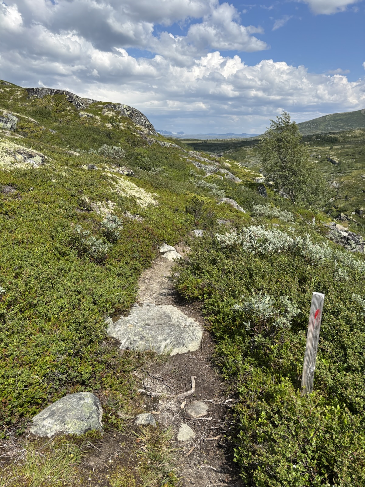 Snídám a pak balím, loučím se s novými kamarády a v 8:55 vyrážím. Dnes mě čeká zhruba 30 km k chatě a penzionu Liseth. Je to soukromé zařízení a zkoušel jsem tam neúspěšně volat a pak jsem jim poslal email, ale odpovědi už jsem se nedočkal. Tak doufám, že fungují, protože jinak nevím, co bych dělal. Asi bych přinejhorším došel 20 km na další chatu, ale to by bylo na hraně.