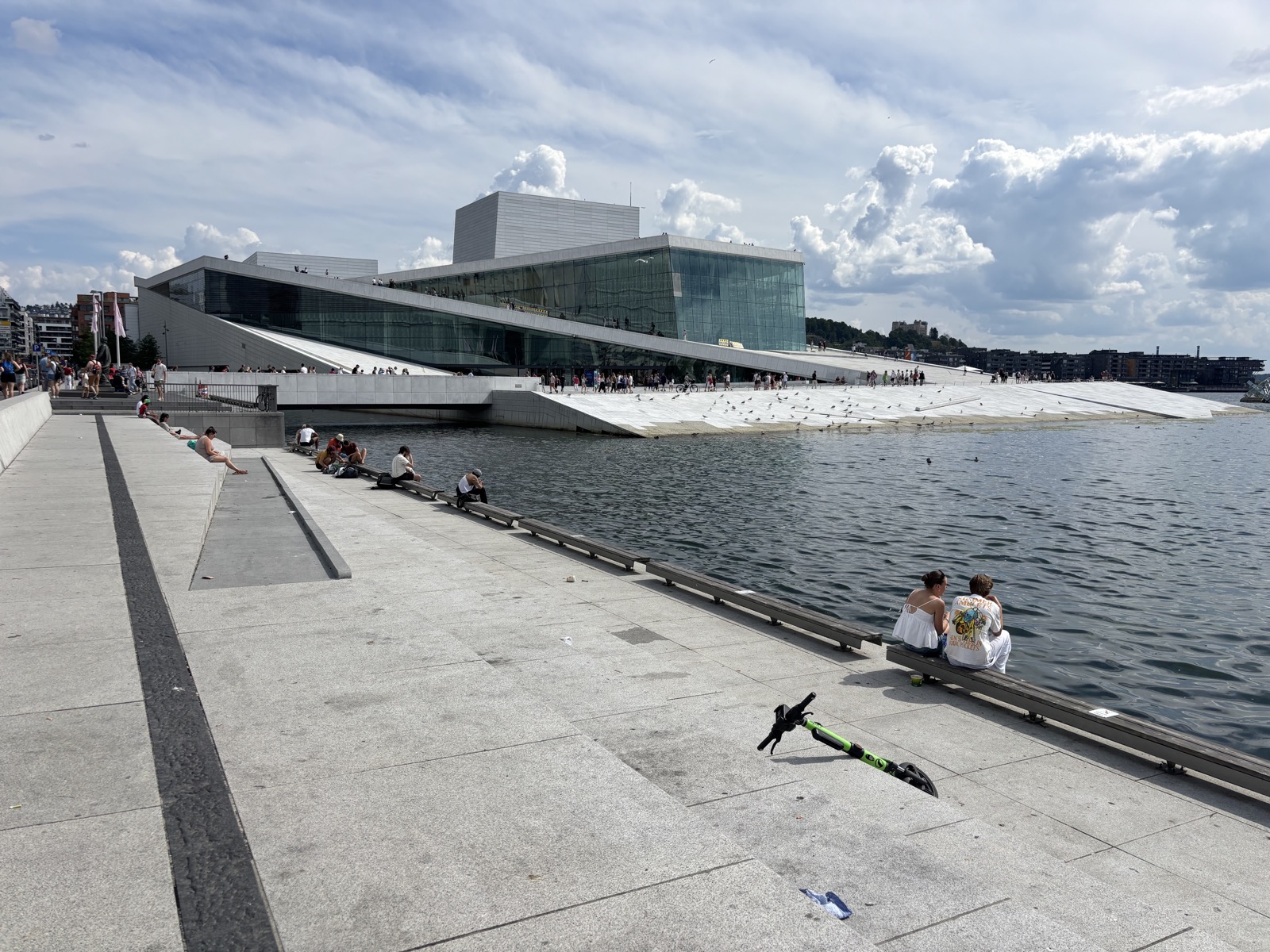 Vystupuju na hlavním nádraží v Oslu a jdu se projít. Je dost teplo. Mají to tu hezké. V obchodě DNT (Den Norske Turistforening) vracím klíč a na kartu dostanu zpět 100 NOK. Za poslední hotovost taky kupuju hezké pohledy, ale se známkami je to horší – nakonec je neseženu. Doba pohlednic asi už fakt pomalu končí.