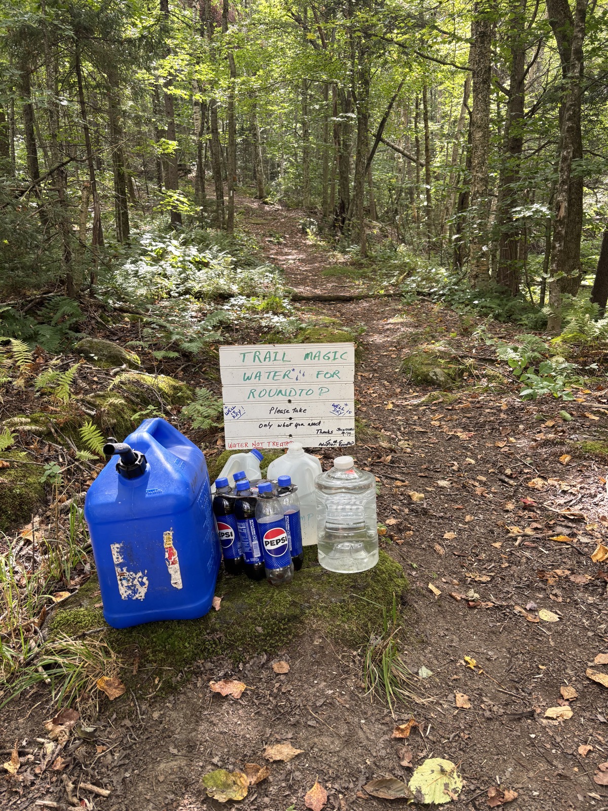 Ve 2 přejdu další silnici, tentokrát asfalt. Začne stoupání na kopeček, na kterém je chata. A jelikož tam došla voda, tak z obou stran je mini trail magic – voda a limonáda. Beru Pepsi a pokračuju.