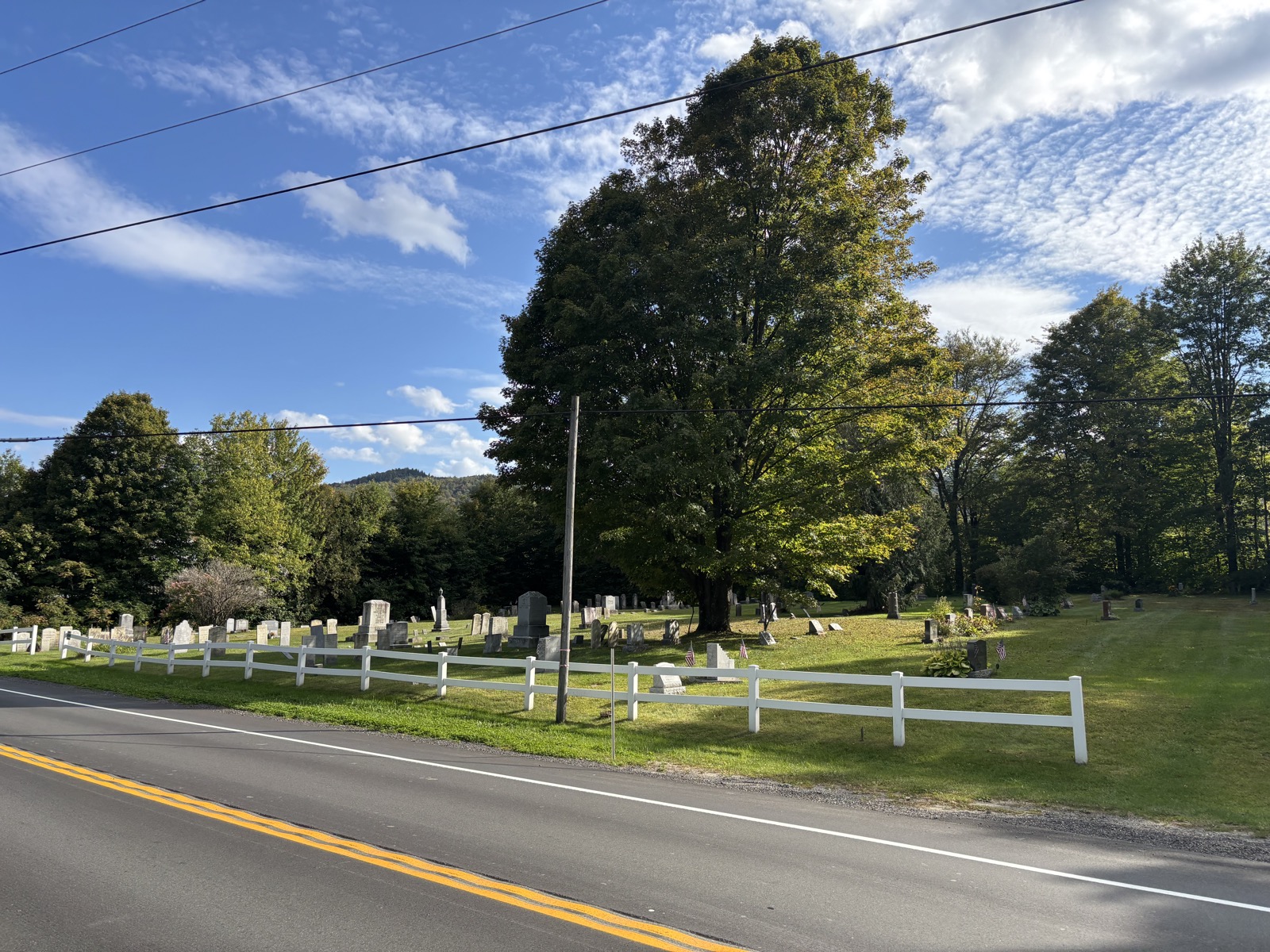 Po třetí přecházím prve jednu silnici a za chvíli druhou. Obě vedou do městečka Johnson, kde jsem původně chtěl doplnit zásoby. Ale ještě nějaké jídlo mám a vydrží mi to do zítřka na další silnici, kde se dá dojet do městečka Stowe.
