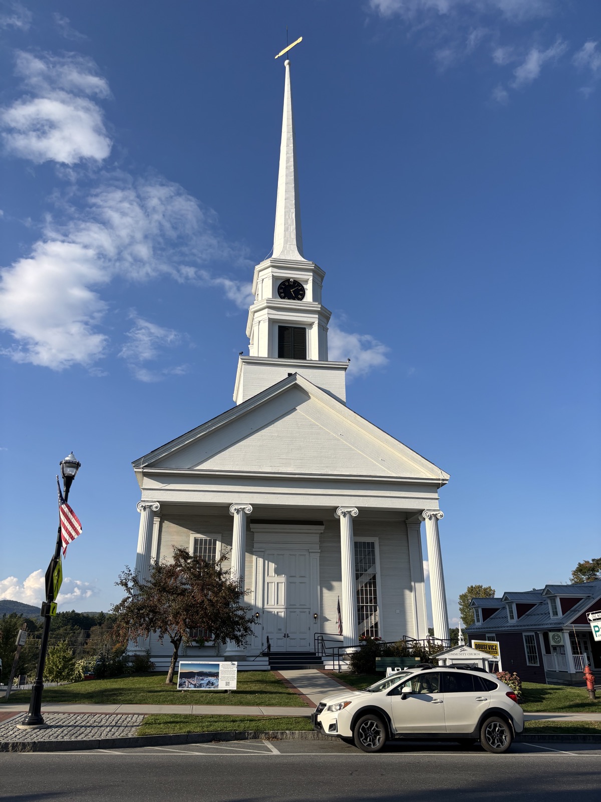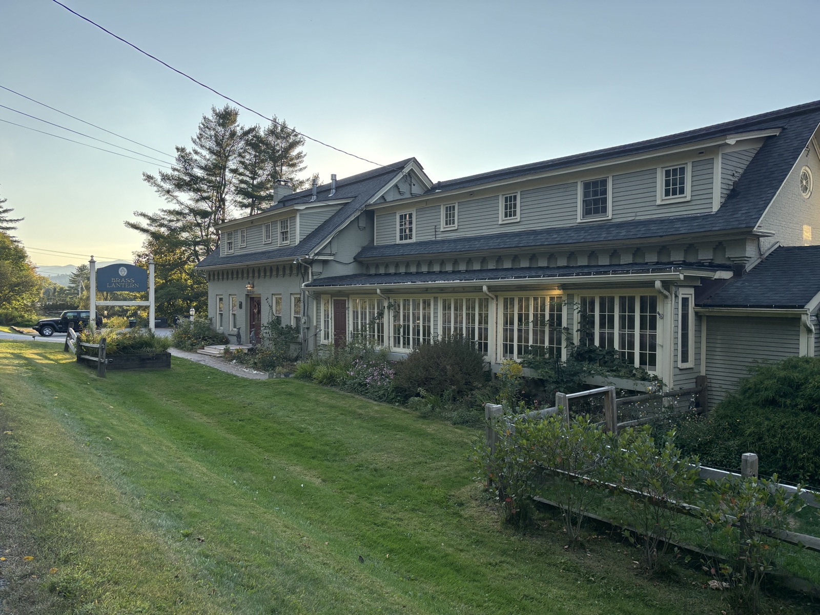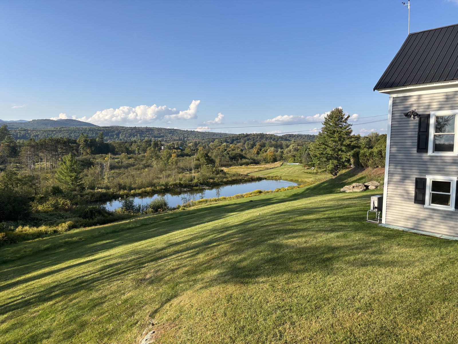 Teď už víceméně jen klesám a klesám, až ve 13:11 dojdu k silnici. Je tu nějaký hiker, tak kecáme, je kousek přede mnou – on zrovna dokoupil jídlo a pokračuje dál. A taky je tu dobrovolník, co pomáhá s trailem, a od něj dostanu broskev, je mňam! Ujistí mě, že v hotelu Green Mountain Inn dostanu slevu.