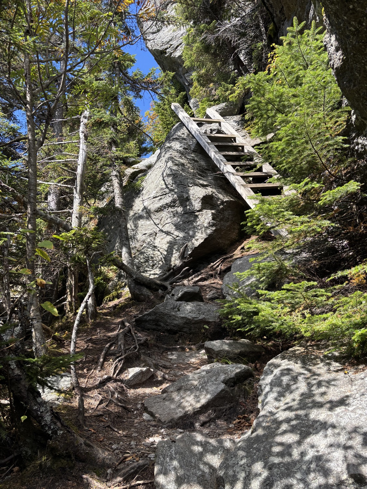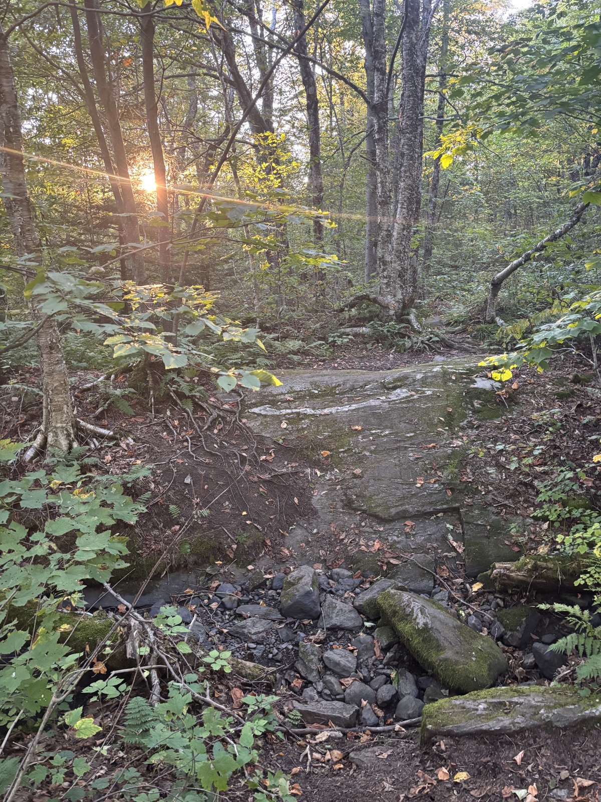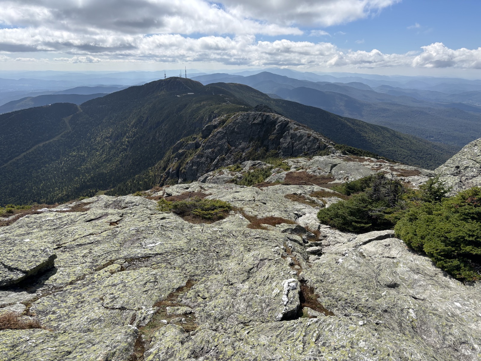 Vyhodí mě u informačního centra, pozdravím místního pracovníka a v 9:30 konečně vyrážím. Čeká mě stoupání na nejvyšší horu Vermontu – Mount Mansfield (1340 m). Prve 650 m k chatě a pak ještě dalších 250 m až na vrchol. Hned zkraje potkám důchodce z předvčerejška. Prohodíme pár slov a pokračuju vzhůru. Na chatě by měla být voda. Mám tedy litr. Tím, že jsem začal relativně pozdě, tak už začíná být dost teplo. Snad budu stoupat rychleji, než se bude oteplovat.