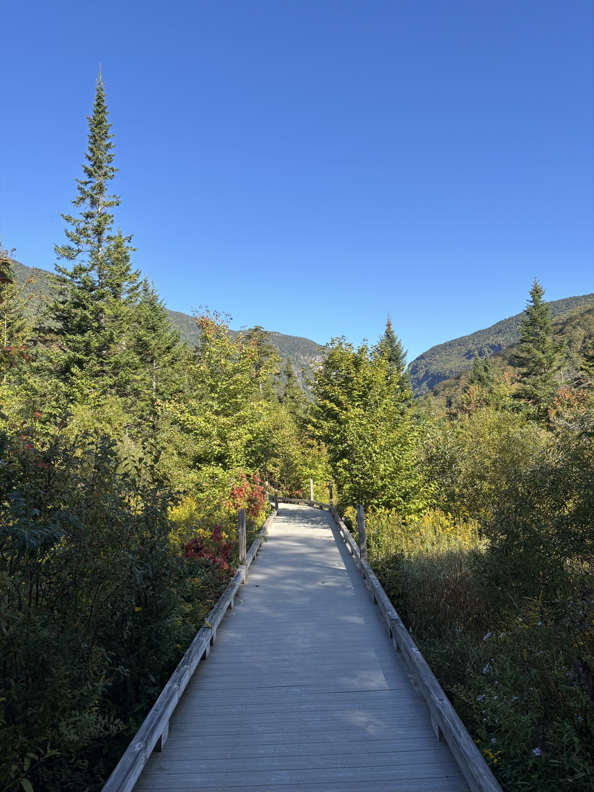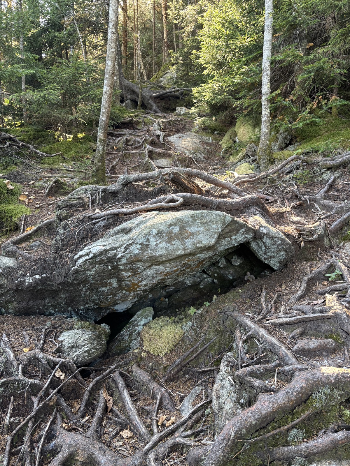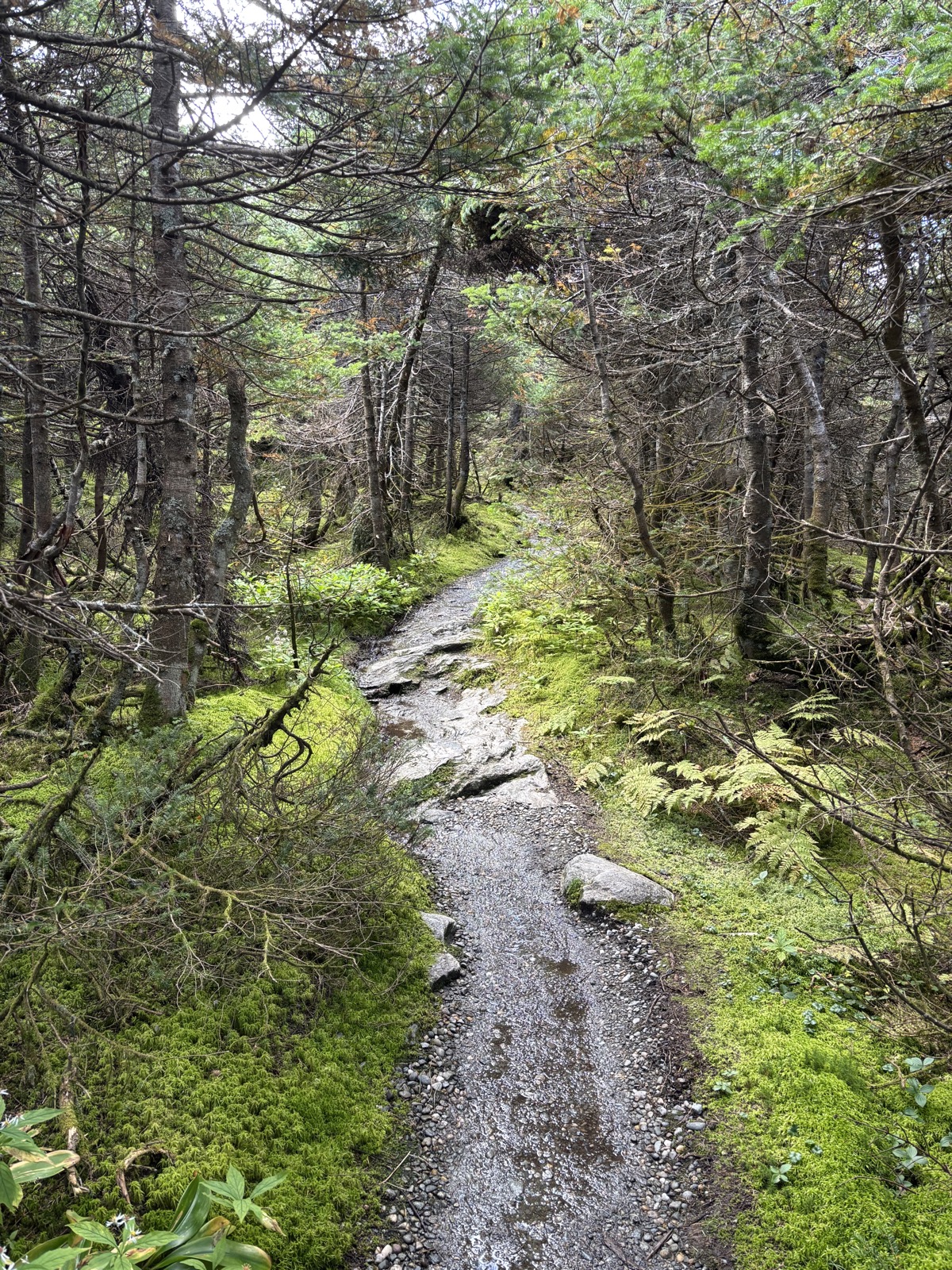 Vyhodí mě u informačního centra, pozdravím místního pracovníka a v 9:30 konečně vyrážím. Čeká mě stoupání na nejvyšší horu Vermontu – Mount Mansfield (1340 m). Prve 650 m k chatě a pak ještě dalších 250 m až na vrchol. Hned zkraje potkám důchodce z předvčerejška. Prohodíme pár slov a pokračuju vzhůru. Na chatě by měla být voda. Mám tedy litr. Tím, že jsem začal relativně pozdě, tak už začíná být dost teplo. Snad budu stoupat rychleji, než se bude oteplovat.