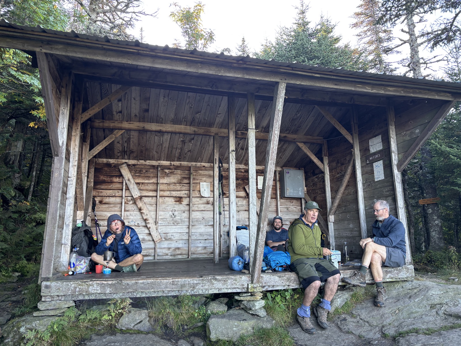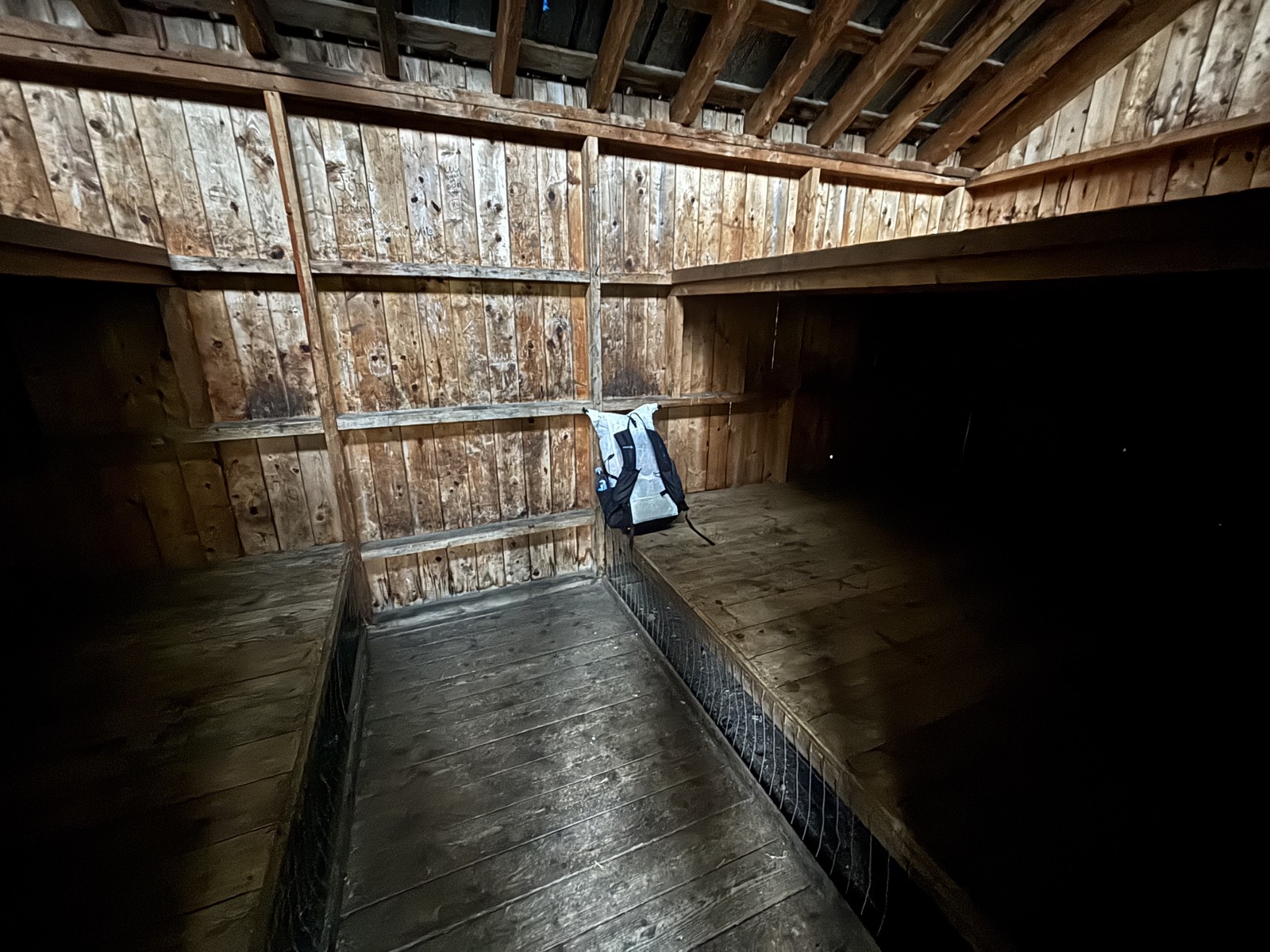 U chaty jsem v 18:40. A nikdo tu není! To jsem nečekal! Čekal jsem dost místa na spaní, chata je vždy větší než otevřený přístřešek, ale myslel jsem, že tu určitě někdo bude. Takže to bude můj první sólo nocleh venku na tomto trailu. Jsem z toho malinko nervózní, ale chata se dá zavřít, takže to je ok.