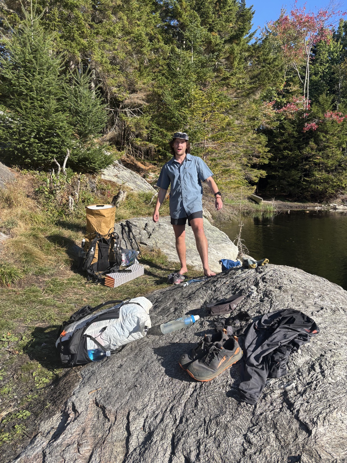 Po chvilce dojdu k jezeru. Jsou tu dva NOBO hikeři. Chvíli kecáme a dají mi tipy na vodu. Když odejdou, tak se koupu. Voda je super.