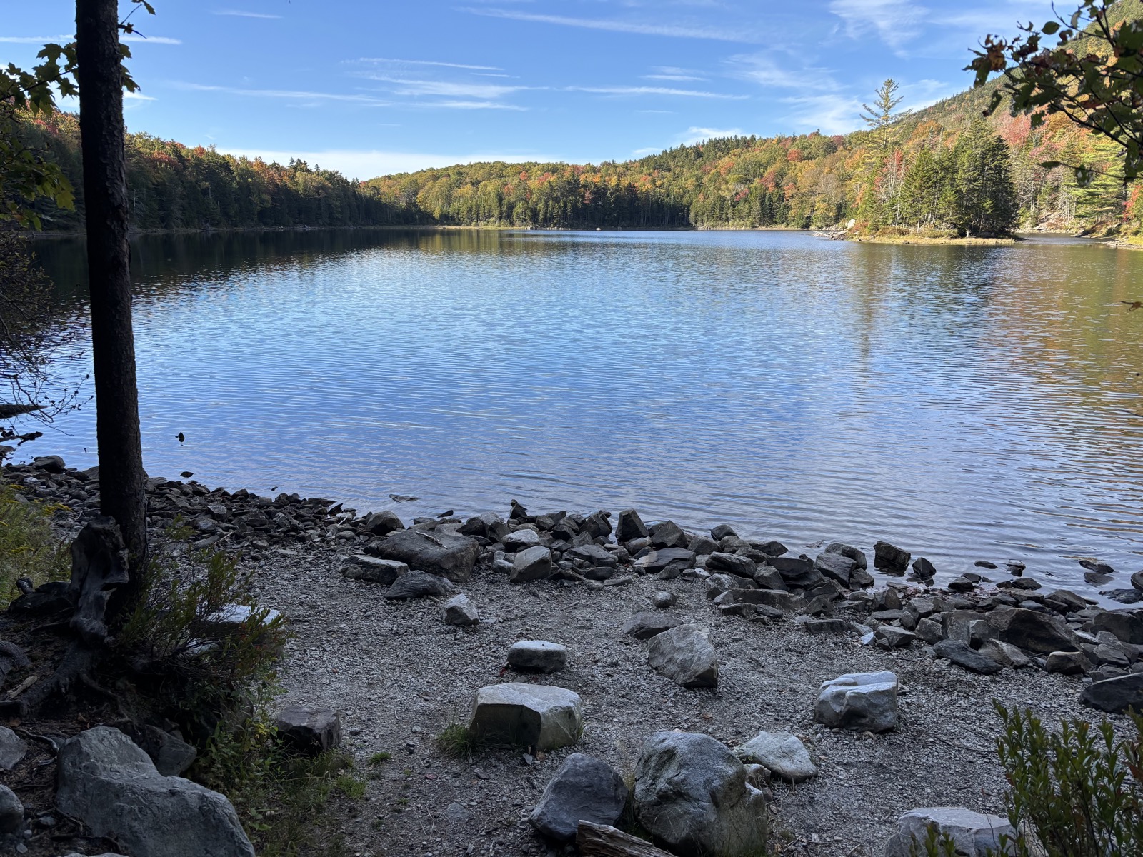 Dělám obvyklé úkony a pár minut po sedmé vyrážím. Čeká mě zbytek kopce, co jsem včera načnul. Asi 150 m. Pak se to trochu vlní a pak slezu k jezeru Little Rock. Když tam dojdu, tak už jsem potkal tak 5 hikerů jít proti mě. Všichni spali u jezera. A když dojdu k přístřešku, tak je tam pořád spousta víkendových turistů. Ještě že jsem zůstal o přístřešek dřív!