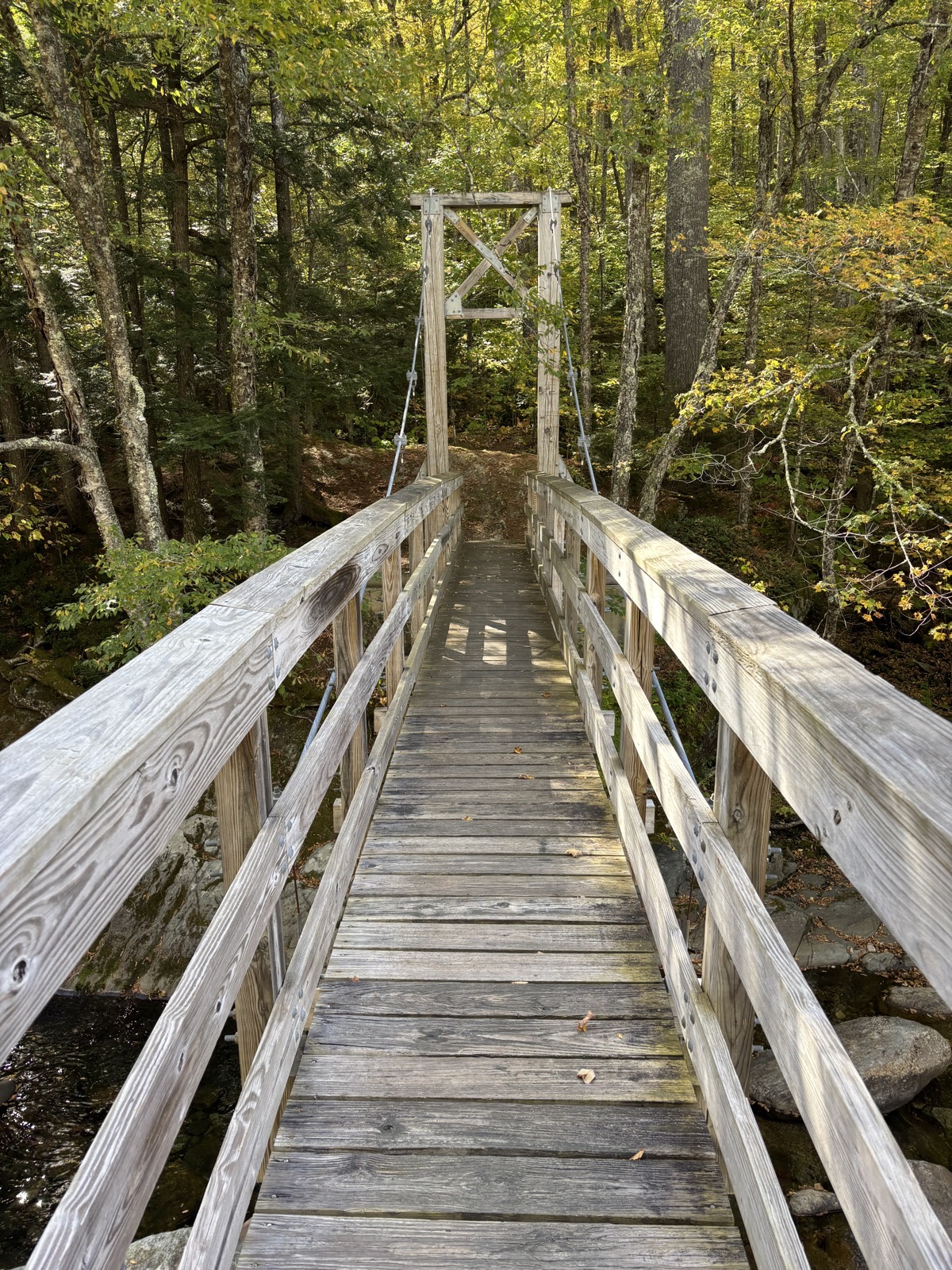 Od jezera jdu pár kilometrů snadnou stezkou podél potoka z kopce. Až dojdu na silnici. Tady potkávám starší pár a chvíli se bavíme.