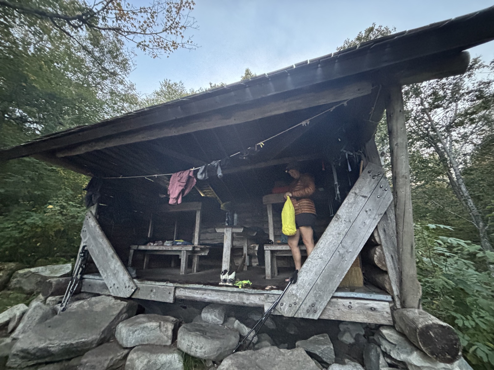 Je tu živo. Prý není místo, mám si postavit stan někde u latríny. Jdu se tam kouknout, místa na stan nejsou nic moc. Vrátím se a naštěstí mi jeden starší hiker udělá místo. Kecáme. Stmívá se. Ukládáme se ke spánku. Teď je 20:10 a dopisuju blog. Všichni se různě vrtí a poblíž se ochomejtá nějaké zvíře.