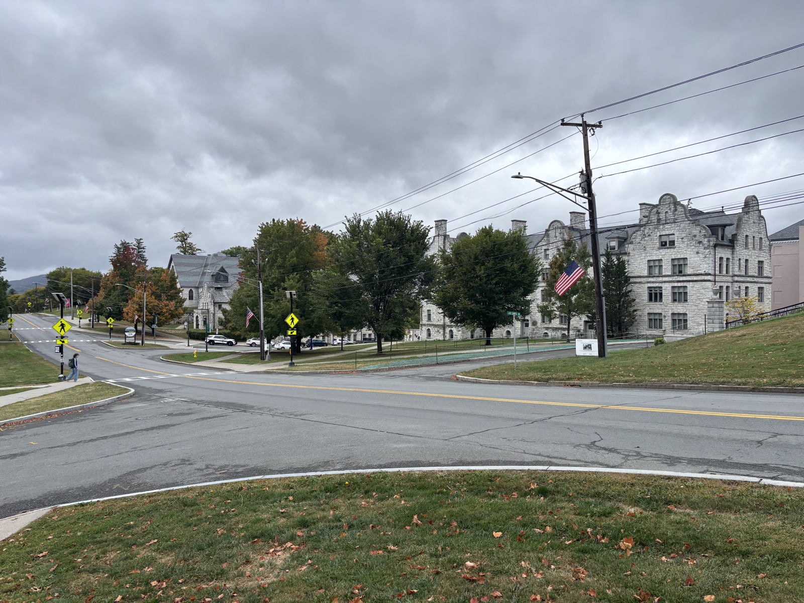 Vyrážím pár minut před 11. Jsem na okraji městečka, tak prve dojdu do centra a pak až na silnici, která vede ven z města mým směrem (na jih). Williamstown je studentské město, je tu jakási vysoká škola a centru města dominují různé univerzitní budovy. Mají to tu hezké. Projdu skrz a zastavím na vhodném místě, kde začnu stopovat. Ušel jsem 3 km. Pořád to vypadá, že možná bude pršet, ale zatím naštěstí nic.