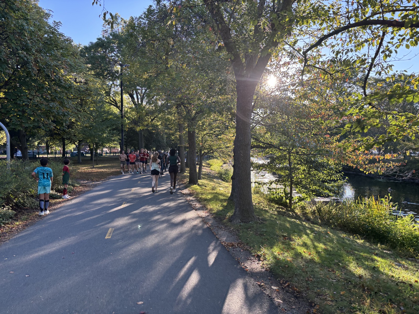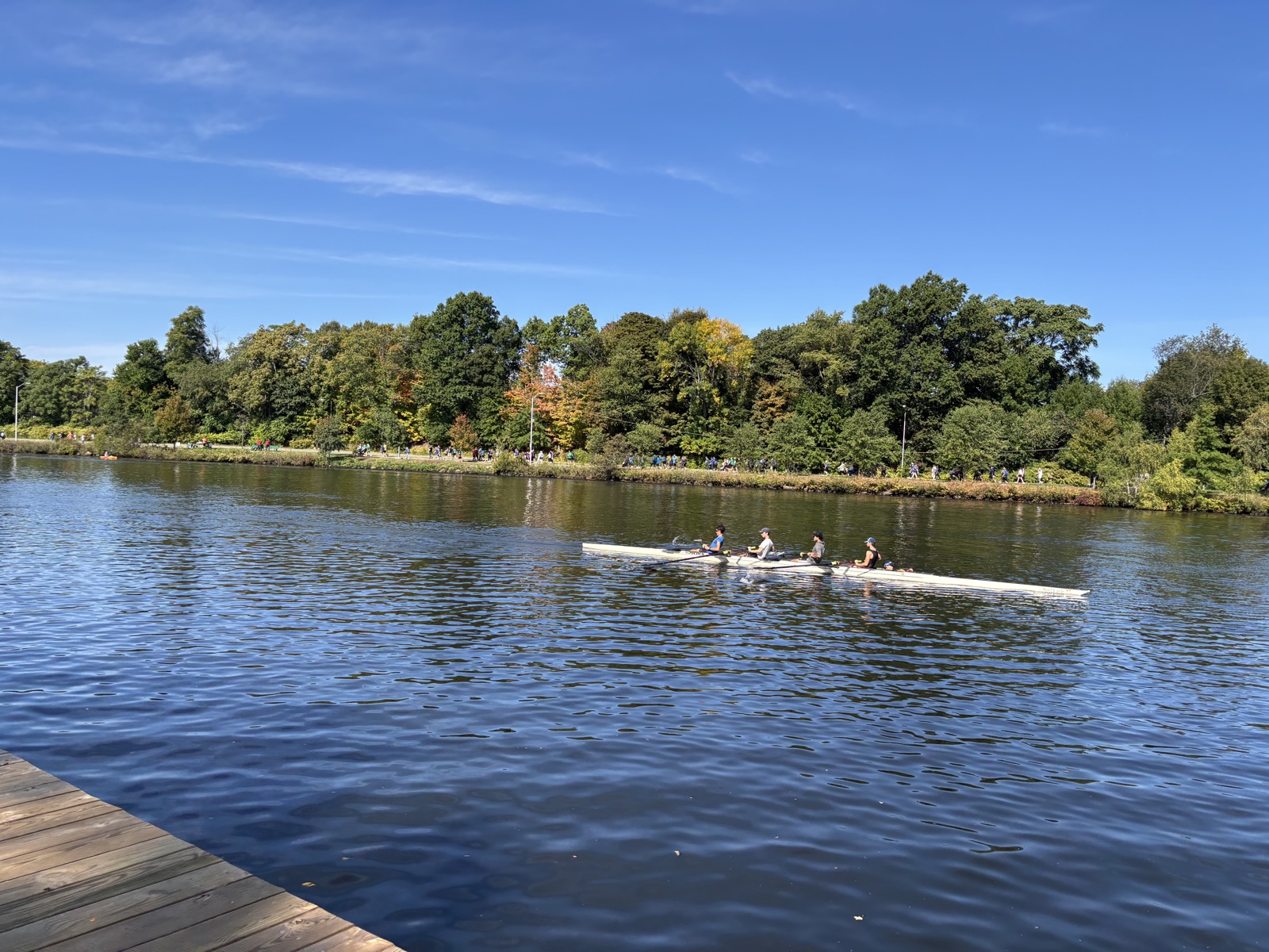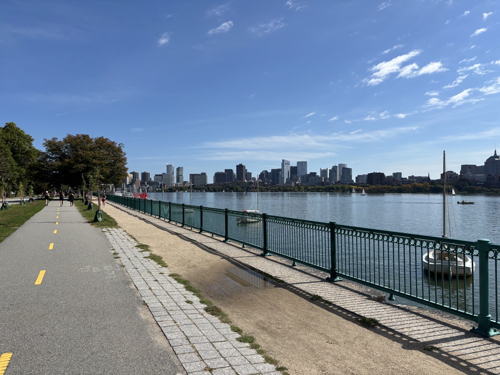 Jedu opět podél řeky, tentokrát dál než minule. Je krásný den. Všude je spousta sportujících lidí, líbí se mi to. Ujedu celkem 29 km.