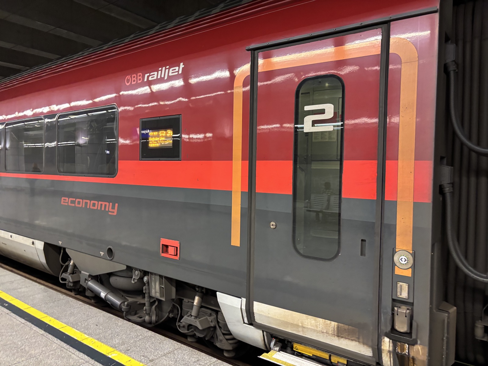 Ve Vídni přistaneme před plánovaným příletem. V 7 už stojím na perónu a nastupuju do vlaku.